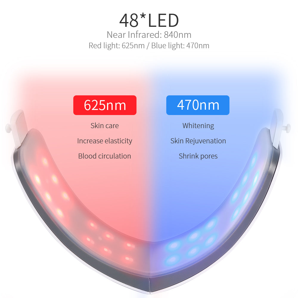 Can effectively fix the face contours, make the face smaller and smoother. V-shaped face creator for every beautiful you. [V-type elastic massage]3,500 high-frequency vibrations per minute, near-infrared light penetrates the dermis, and lifts and tightens the V-face. It works better with the essence, and the ion is introduced into the essence to enhance absorption. [2 Photon Modes]2 Photon Modes: Blue light mode for acne removal, Red light mode for flat wrinkle skin. 2 lights work together for comprehensive skin care. [Smartly and Widely Applicable]Ergonomic design perfectly fits for human face contour, foldable ring shape meet all the face shapes,Headband length adjustable. [Users Friendly Design]Adopt skin-friendly material, safe and irritant free. 10 minutes timing function, intelligent remote control operation, more simple and convenient.Small size and light weight, You can slim your face anytime and everywhere.